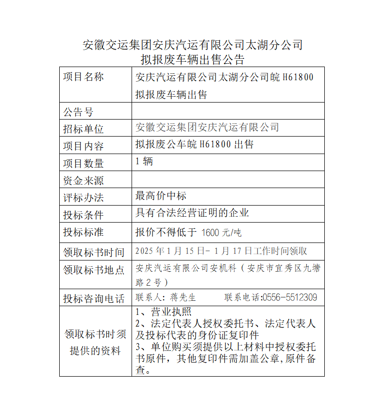 太湖分公司擬報廢車(chē)輛出售公告