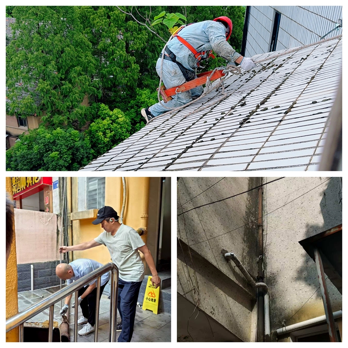 8月安全巡查期間,綜合服務(wù)中心安全科針對紡織南路7號樓及周邊區域開(kāi)展專(zhuān)項隱患排查,發(fā)現兩處亟待處理的安全問(wèn)題:一是7號樓公廁外側落水管多處破裂,導致雨水滲漏至路面并形成大面積積水,不僅影響市容環(huán)境,更對過(guò)往車(chē)輛及行人構成潛在風(fēng)險;二是慶達綜合樓頂層臨街面瓷磚多處開(kāi)裂,縫隙中滋生的灌木根系已侵入建筑結構,存在高空墜物隱患,嚴重威脅公共安全。